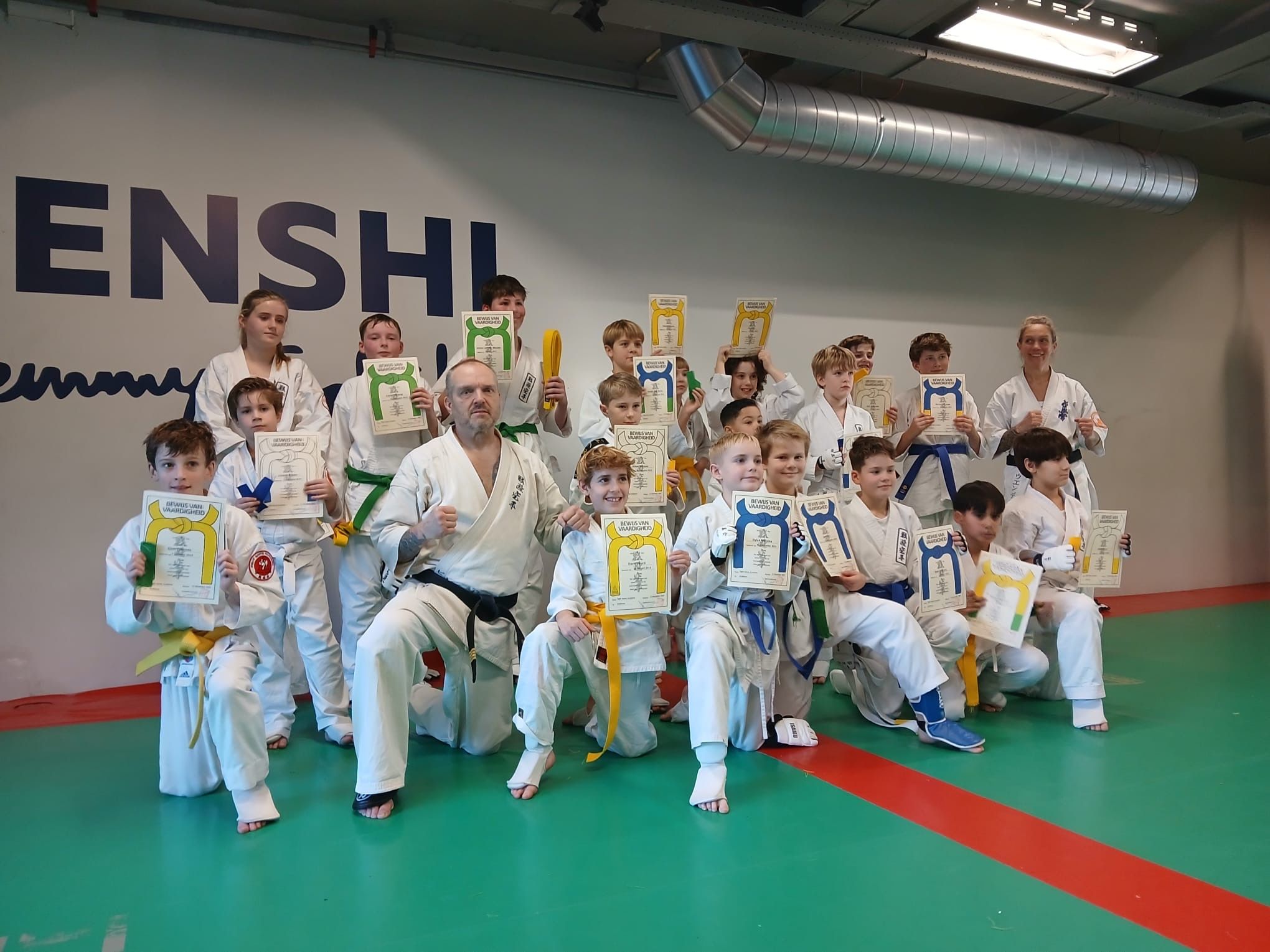 In front of a full room of parents, family members and other supporters, the candidates showed what they had been working hard on over the past months. Each exam began with Kihon, the fundamental movements of punches, kicks and stances. This was followed by Kata, where technique, control and precision came together. For each grade, a different Kata was required — a challenge our karateka met with determination. Finally, the Randori section allowed them to apply their skills in controlled sparring.