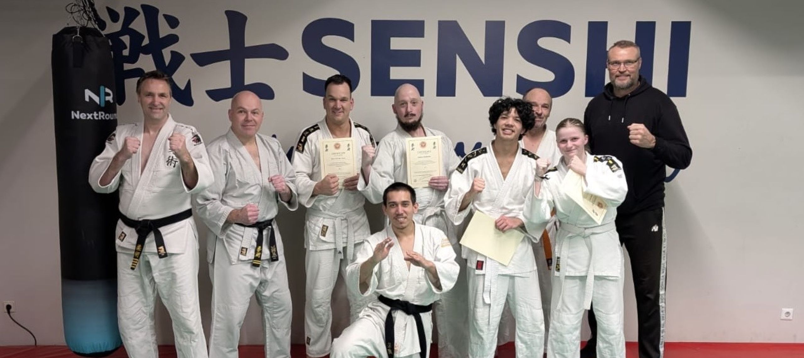 Het examen duurde maar liefst twee uur en omvatte een breed scala aan technieken – van stoten en trappen tot bevrijdingen, klemmen, worpen en controletechnieken.